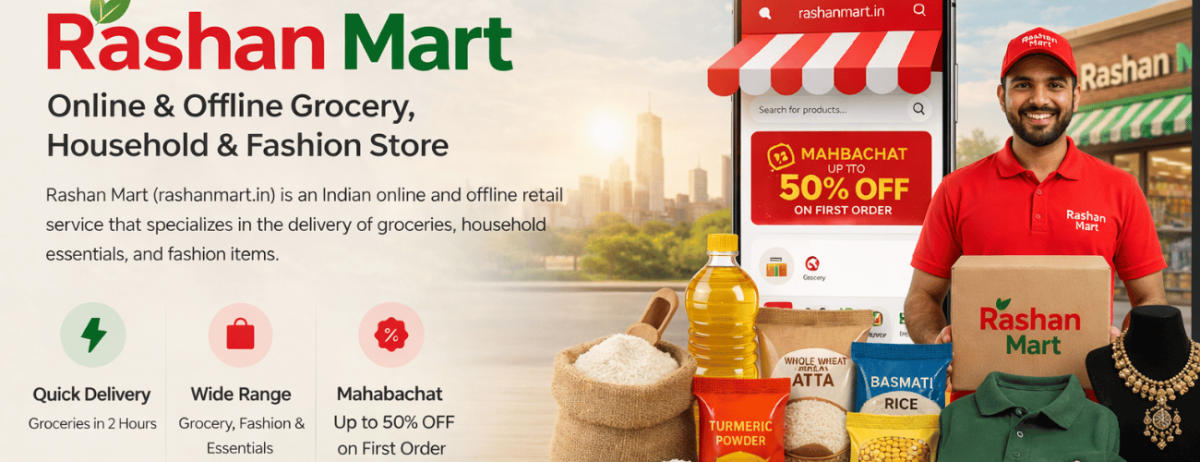 Rashan Mart (rashanmart.in) is an Indian online and offline retail service that specializes in the delivery of groceries, household essentials, and fashion items.